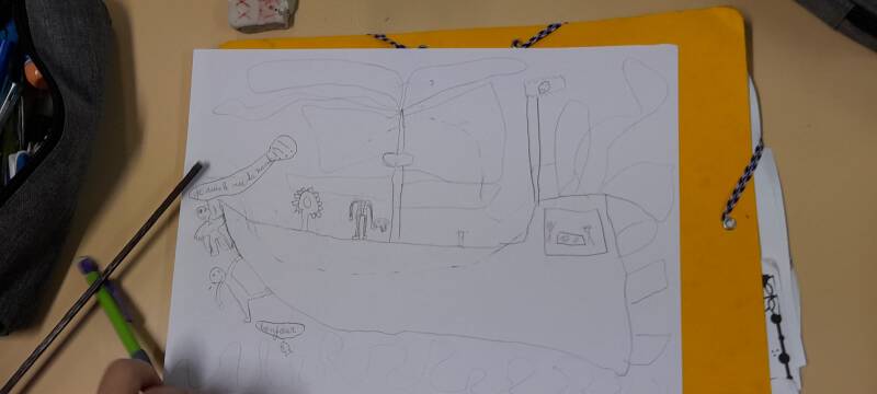 Les intervenants expliquent aux enfants que le dessin est avant tout une affaire d'observation et de simplification de la forme pour aboutir à des graphismes simples mais efficaces.